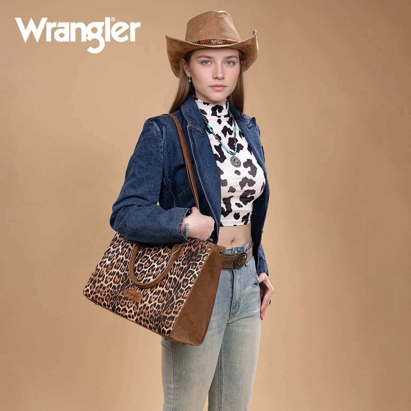 Wrangler Leopard Print Wide Tote Bag/Crossbody - Brown