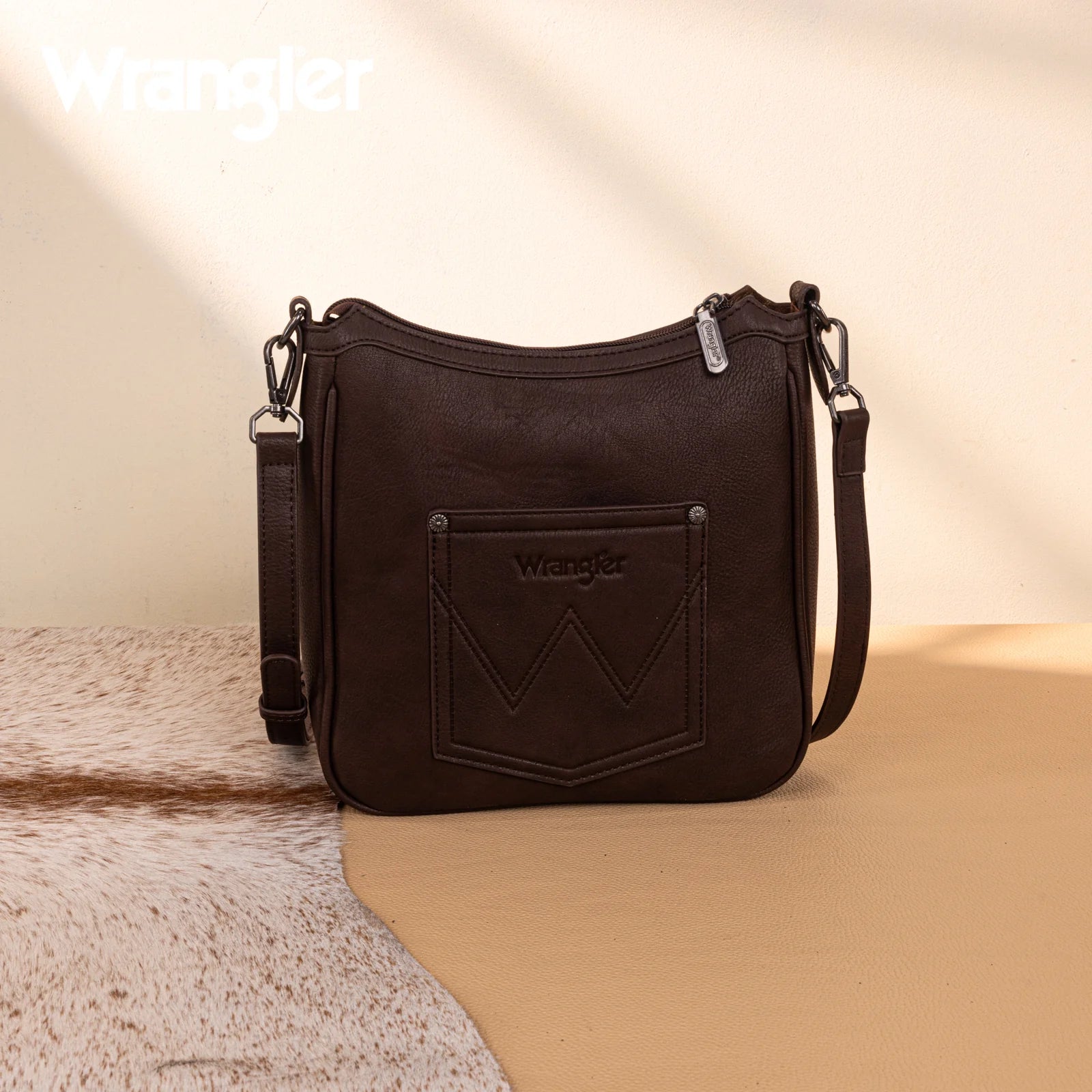 - Wrangler logo applique on the front