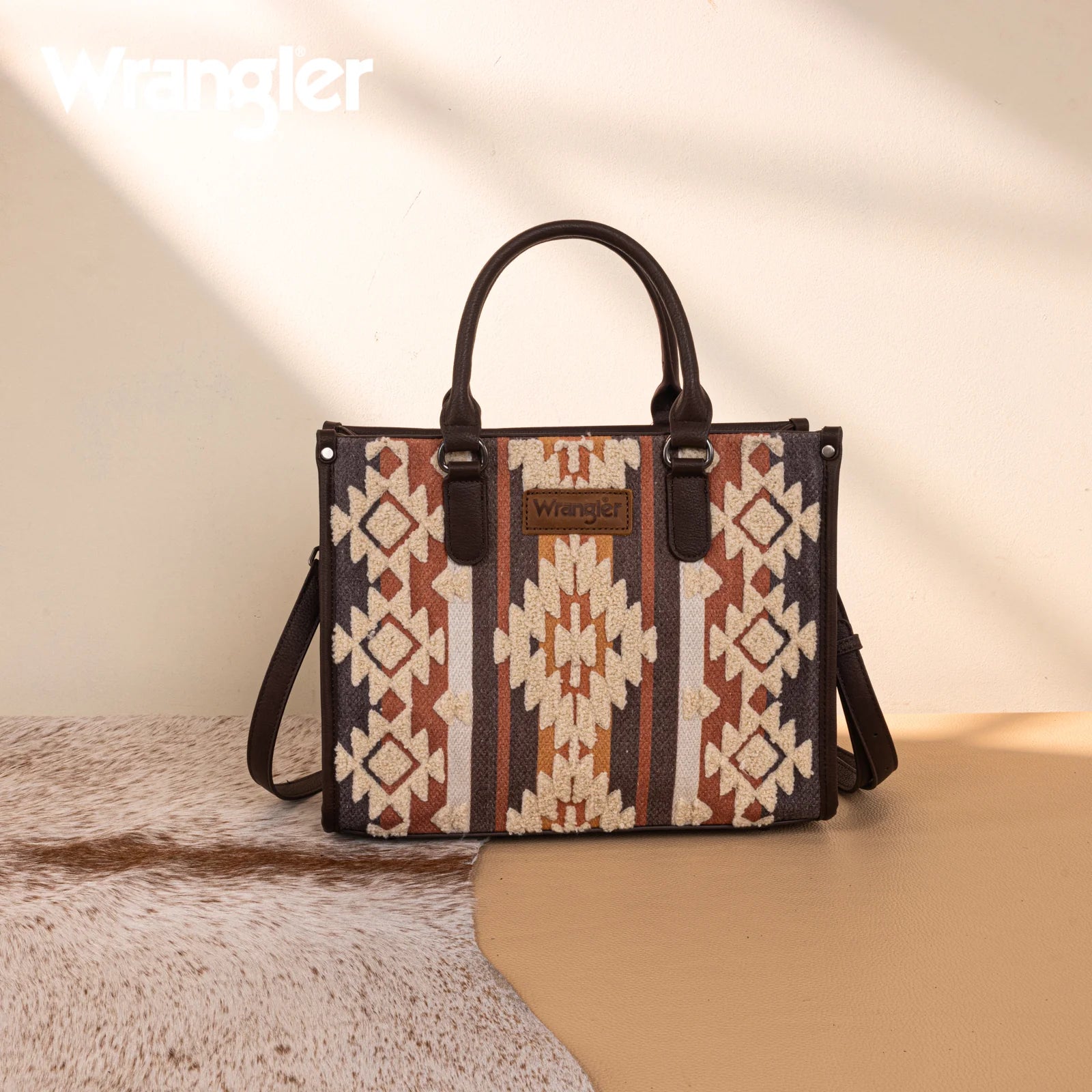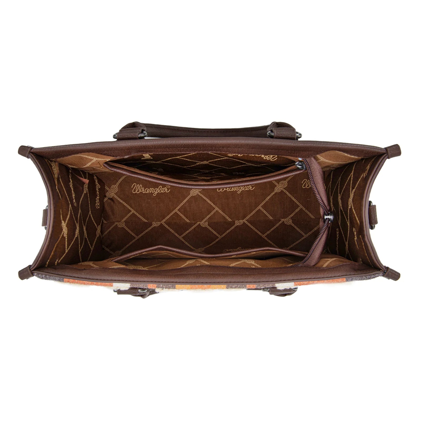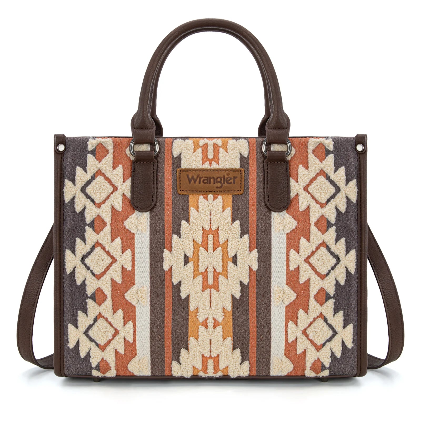 Wrangler Sherpa Aztec Canvas Tote/Crossbody - Coffee