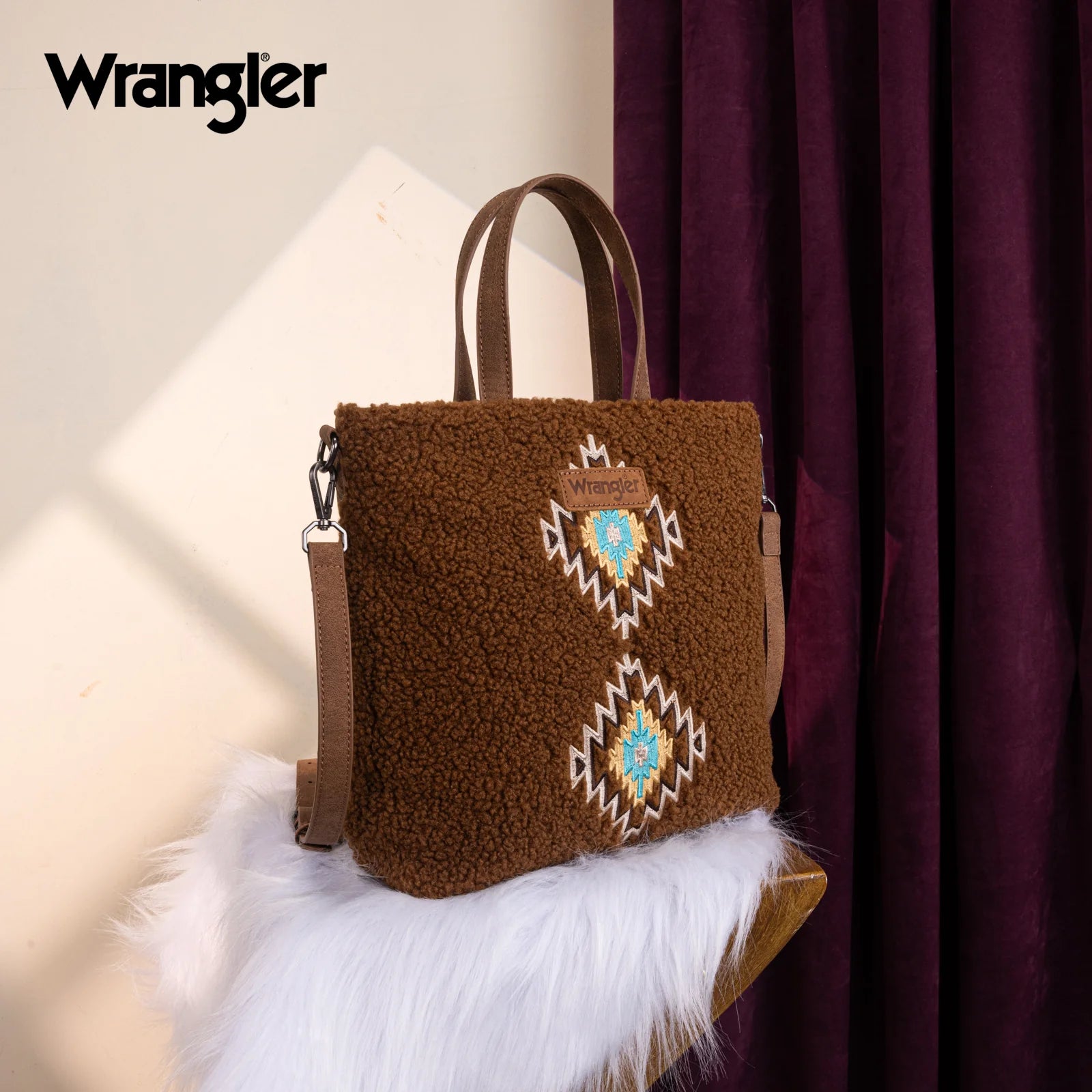Wrangler Sherpa Aztec Sherpa Tote/Crossbody - Brown