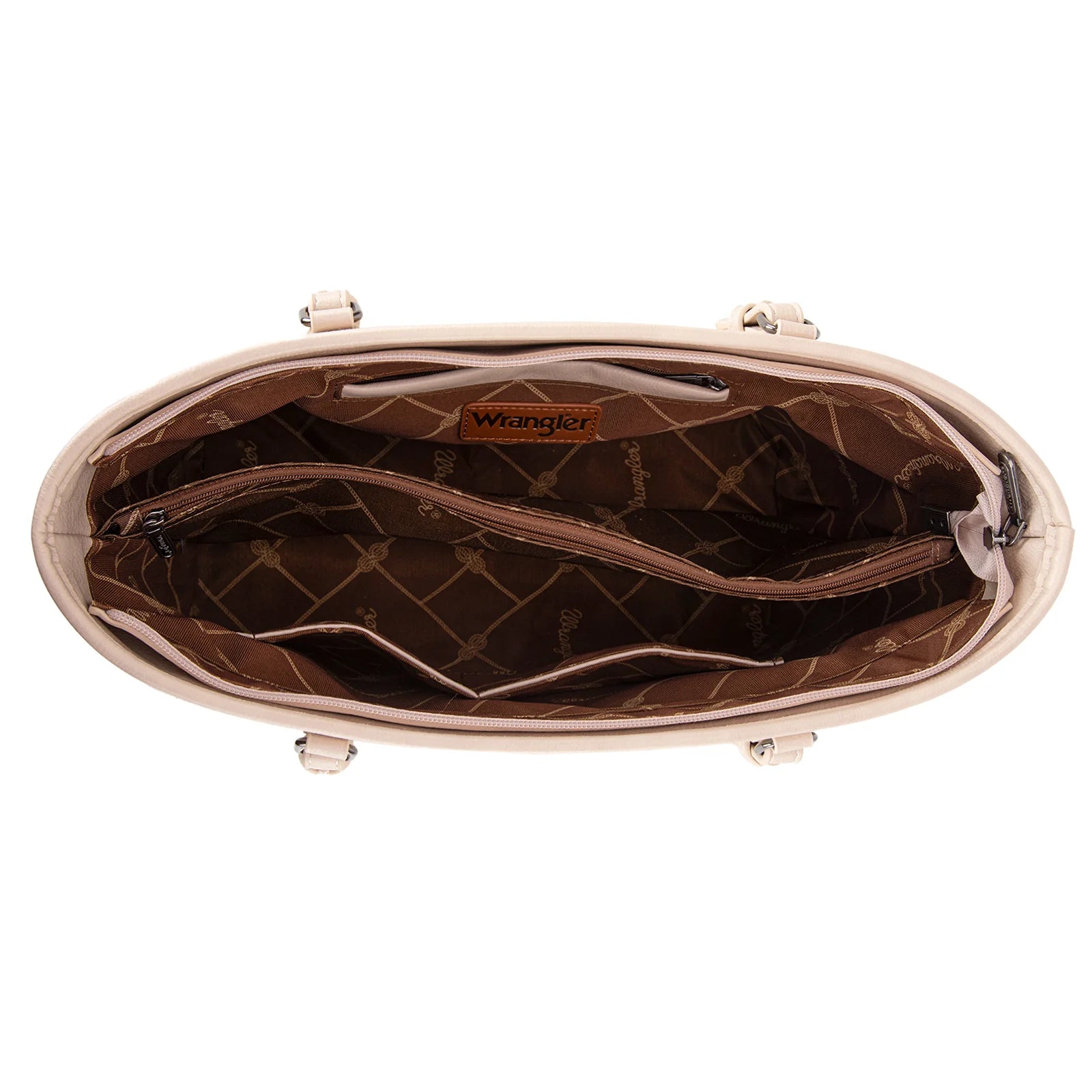 - Inside of the bag includes a zippered compartment, a zippered pocket and 2 open pockets
